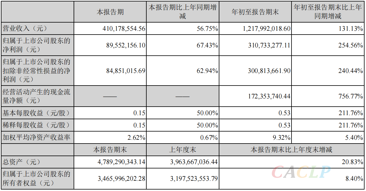 10月29日,米兰网站登录入口披露2021三季报。报告期内,实现营业收入12.18亿元,同比上升131.13%;归母净利润3.11亿元,同比上升254.56%;其中2021年第三季度,公司单季度主营收入4.1亿元,同比上升56.75%;单季度归母净利润8955.22万元,同比上升67.43%。