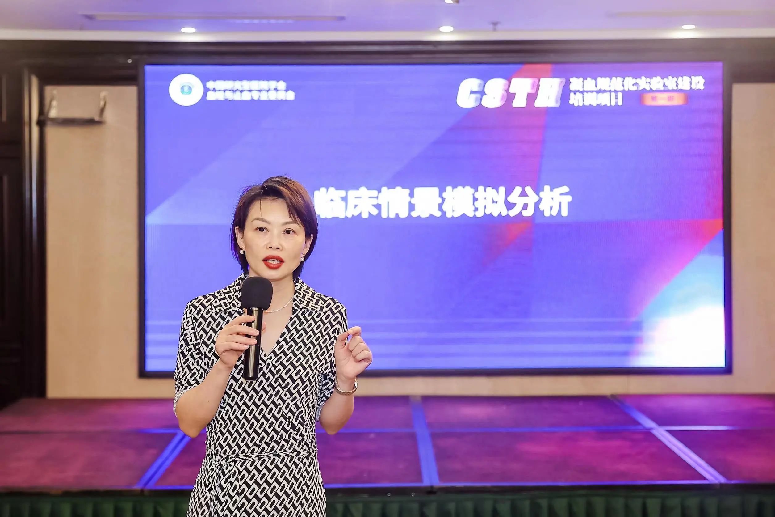 随后,学会秘书长、中国医学科学院阜外医院张洋教授也受邀发言。她表示:“感谢来自全国各地的同仁。我们这个培训策划了有两年,既往病例让我们感受到检验与临床沟通的缺乏,这也是我们开展这个项目的初衷,带着这样的初衷,我们希望能提升血栓与止血领域各位同仁与临床沟通的能力,成为我们这个领域的中坚力量。”