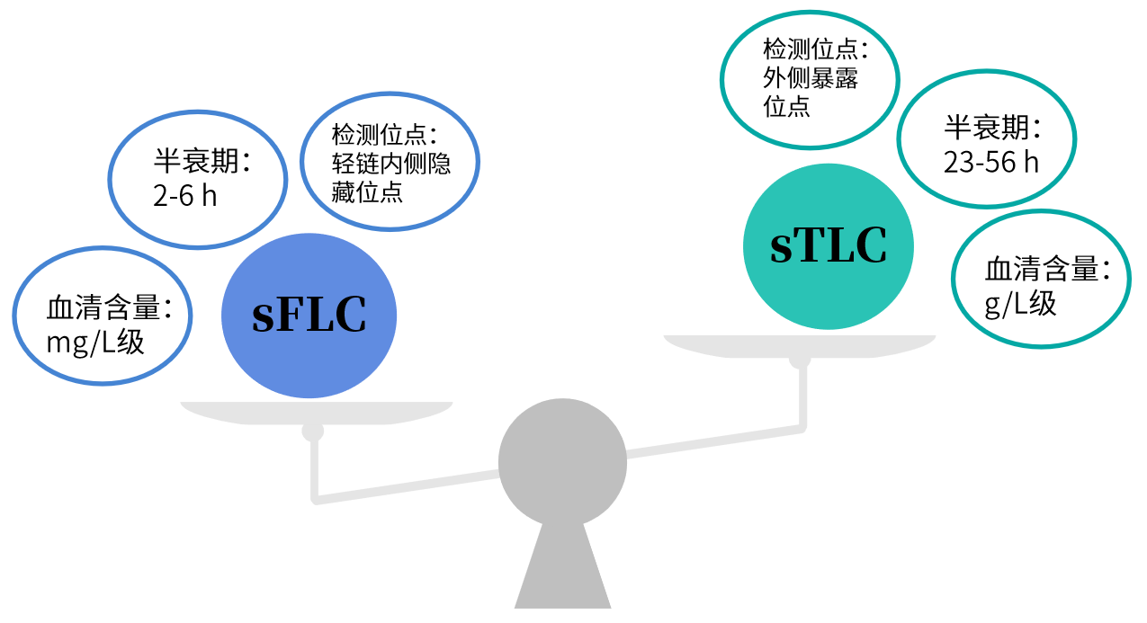 由于sFLC灵敏度更高,半衰期更短,能更加及时地反映病情变化,为疾病的早期诊断提供更可靠的依据,近年来成为优于总轻链测定的标志物。