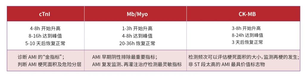 《髓过氧化物酶、心脏脂肪酸结合蛋白和心肌肌钙蛋白I联合检测在急性冠脉综合症中应用专家共识( 2018)》指出:综合观察MPO、H-FABP与cTnI的动态释放曲线,采用MPO、H-FABP与cTnI联合检测,可以对AMI进行早期预测及早期诊断,弥补了现有的心肌标志物三联检( cTn、MYO、CK-MB) 或心电图等检查手段在预测和早期诊断AMI方面存在的不足。