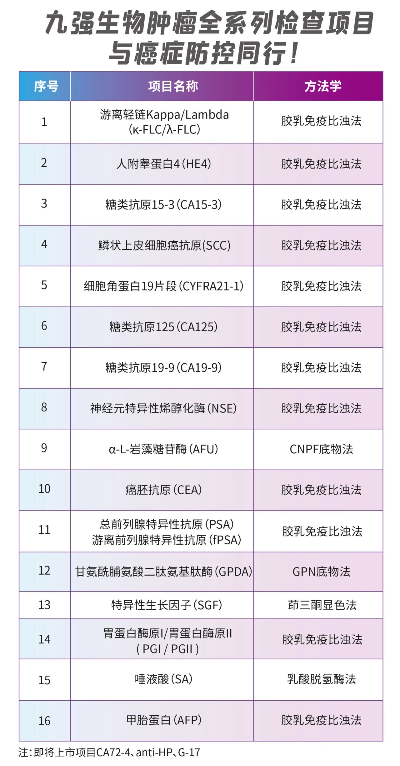①全面的肿瘤项目菜单,涵盖常见肿瘤的标志物