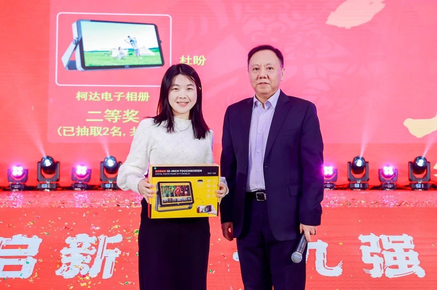 大屏幕上滚动的抽奖姓名吸引了所有人的目光,一份份大奖接连花落在幸运儿头上。